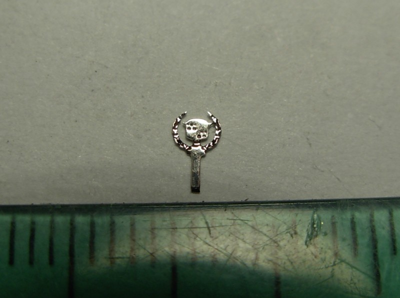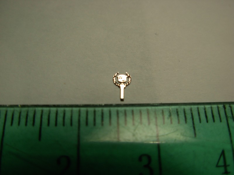 The photo-etched and Nickel plated relief (3D) Cadillac hood Logo in width 2 mm.